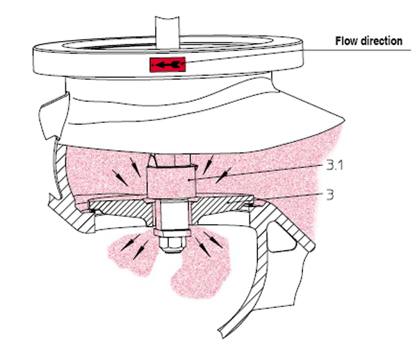 Valves with balancing plugs have to be installed with medium flowing over the plug (3) as indicated by flow direction arrow on valve body.